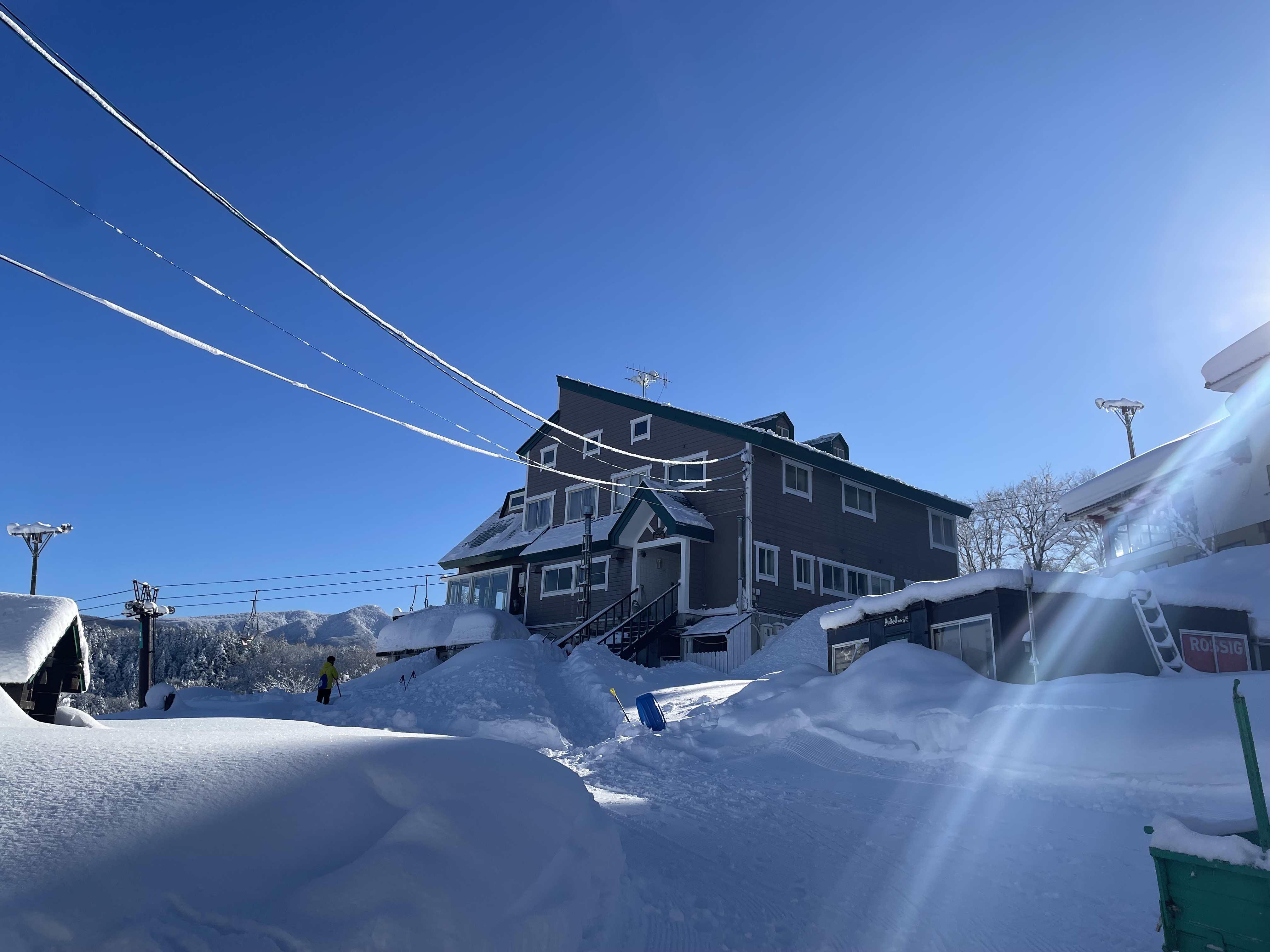 (コース内ですのでお荷物は雪上車でお運びします。)