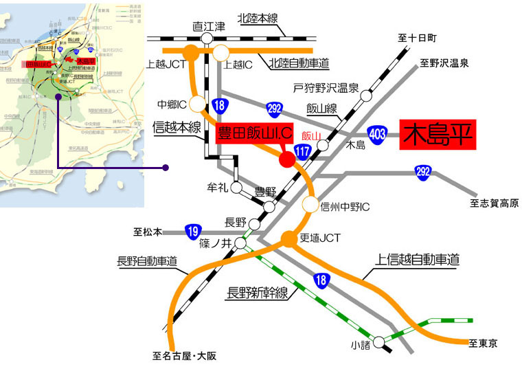 上信越高速道路 豊田飯山インターチェンジから15km。